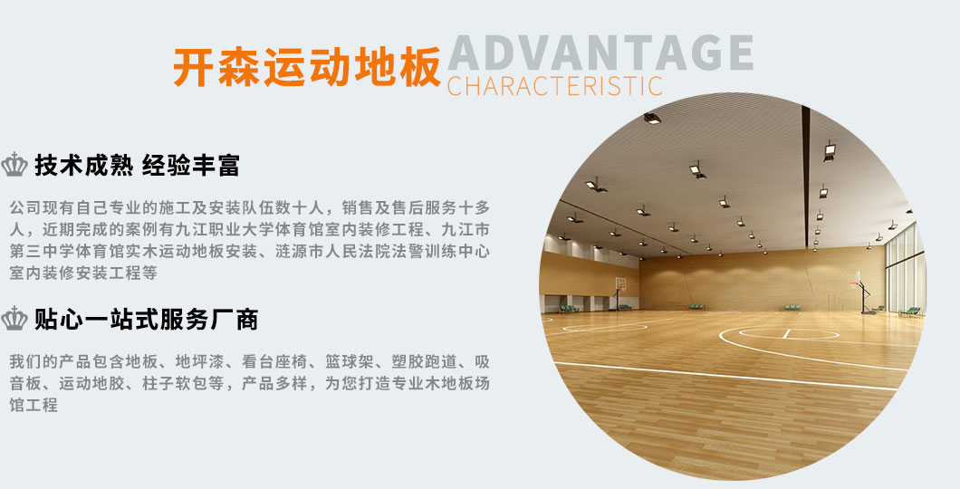九江開森地板有限公司位于美麗的江西省九江市。地板原材料采自于吉林,黑龍江等長白山地區(qū)自家承包林場的優(yōu)質(zhì)木料,主,輔龍骨采用美國進(jìn)口花旗松為原料。開森地板擁有雄厚的科技和研發(fā)實力,匯集了一批優(yōu)異工程師和專業(yè)的安裝團(tuán)隊,引進(jìn)的進(jìn)口地板安裝設(shè)備。本公司對外承攬大、中、小體育場館的運(yùn)動木地板安裝工程。做到質(zhì)量保證、價格合理。在行業(yè)內(nèi)擁有較高的知名度,實力迎合市場!